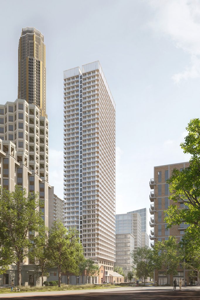 The tower introduces a clear structural framework with a load-bearing facade and a central corridor with daylight. This setup allows apartments to be easily combined or subdivided over time, supporting long-term adaptability. The environmental strategy is intentionally low-tech: balconies provide fixed solar shading, while an airtight and well-insulated envelope prevents overheating without mechanical systems.