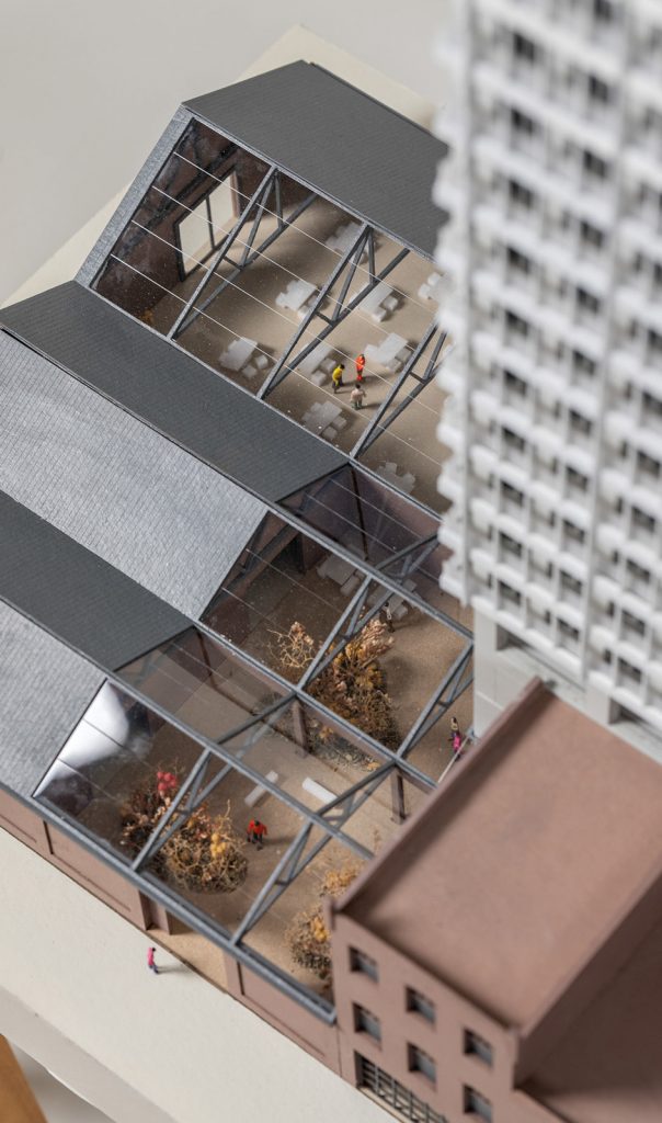 Tower in a Factory transforms a historic industrial complex in Katendrecht, Rotterdam, into a mixed-use ensemble with a new residential tower. The project builds on the existing fabric, retaining the fine-grained structure of the original buildings and reusing elements wherever possible. The ground floor accommodates neighbourhood amenities and green courtyards that reconnect the site to its surroundings.